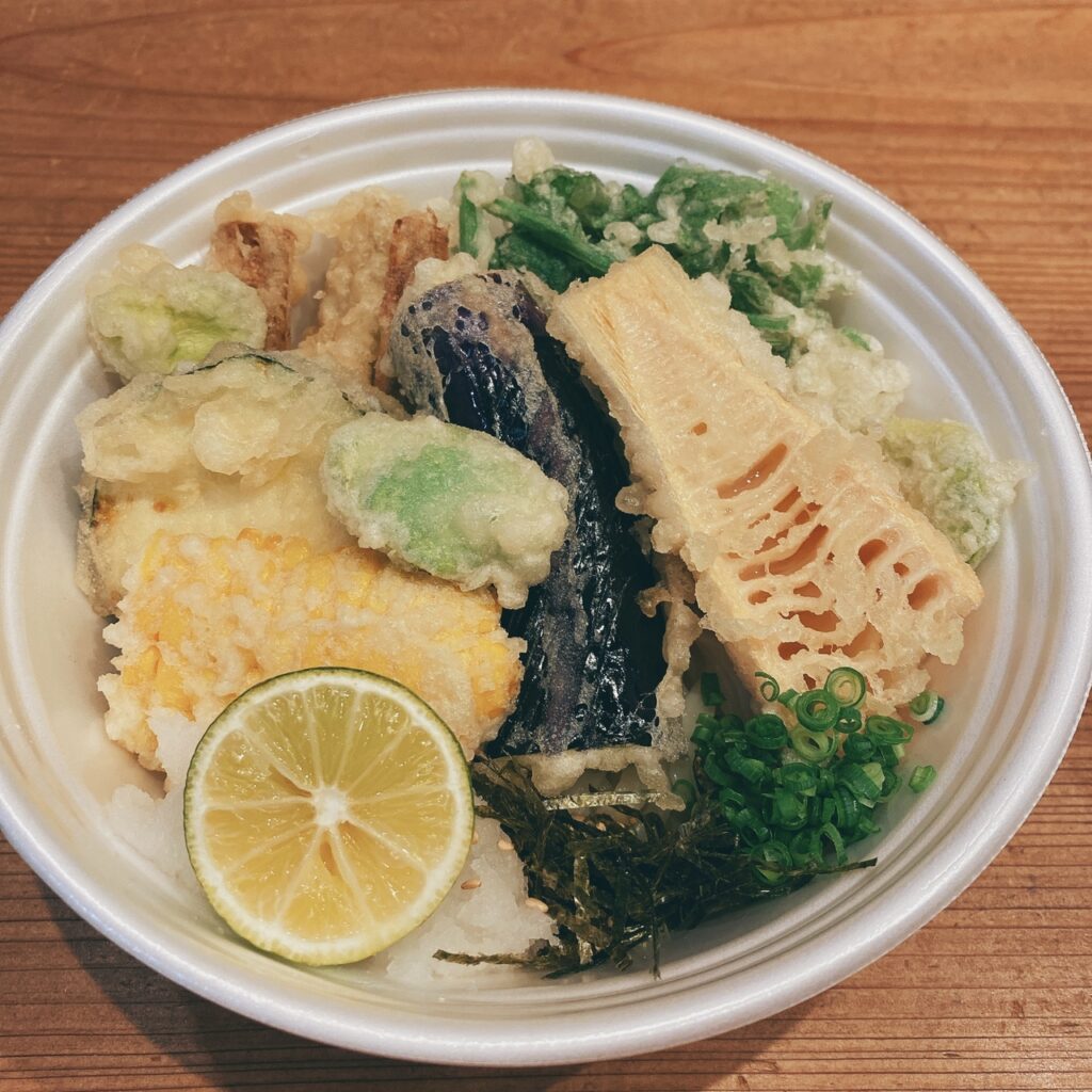 げんき名物のごぼう天に今が旬の空豆、せり、ズッキーニ、長なす、とうもろこし(22日より)筍など