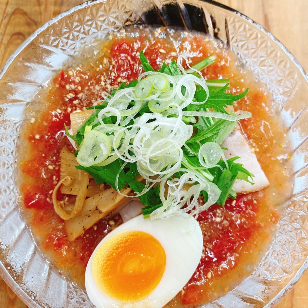 お休みの朝ラーにこのトマトのとろみ感とメンマのブラックペッパーのアクセントがいいね。