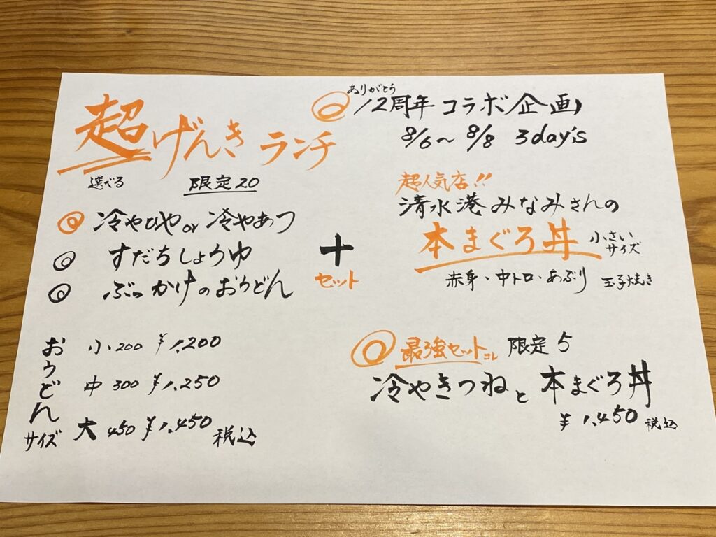 清水港みなみさんの本まぐろ丼(ミニサイズ)とげんきのおうどんの超げんきランチセットが限定20。