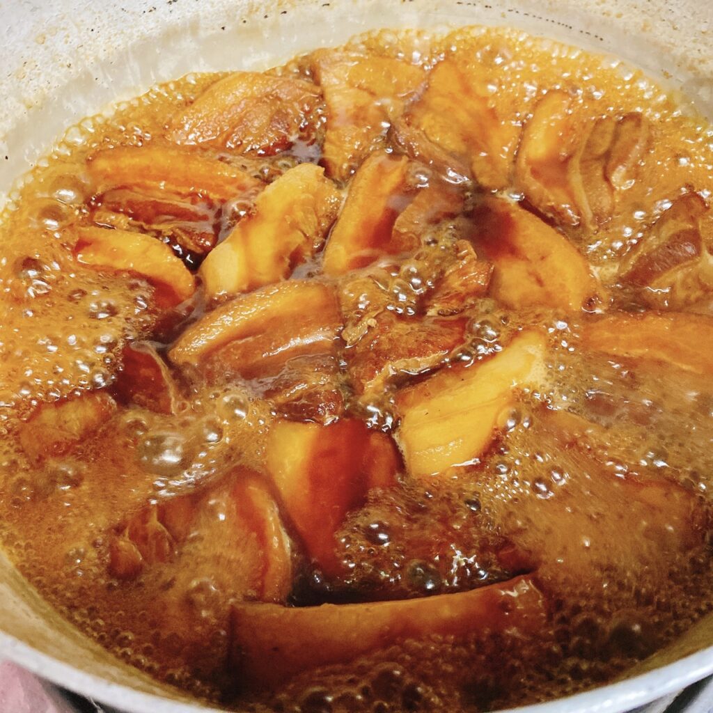 焼き、蒸し3時間、煮つける工程で5時間かけて仕込みします。