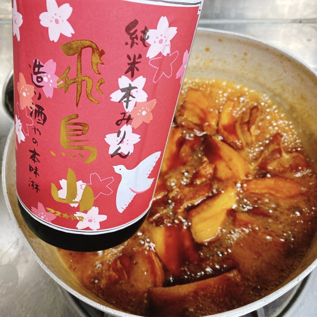 仕上げは藤枝杉井酒造の飛鳥山味醂で強火で照りをつける。