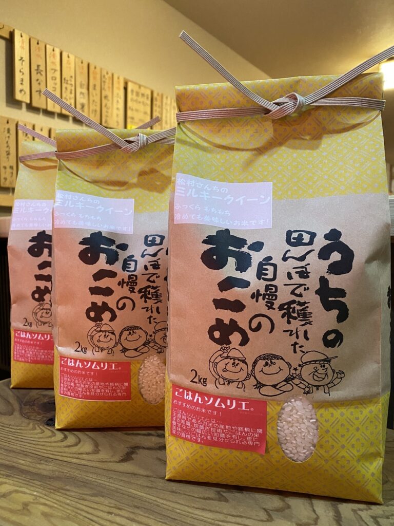 ⬆げんきランチでも大好評のごはんもの。焼津松村さんのミルキークイーンも店内にて販売しております。こまめに店主が毎週精米しているので鮮度が別格です。