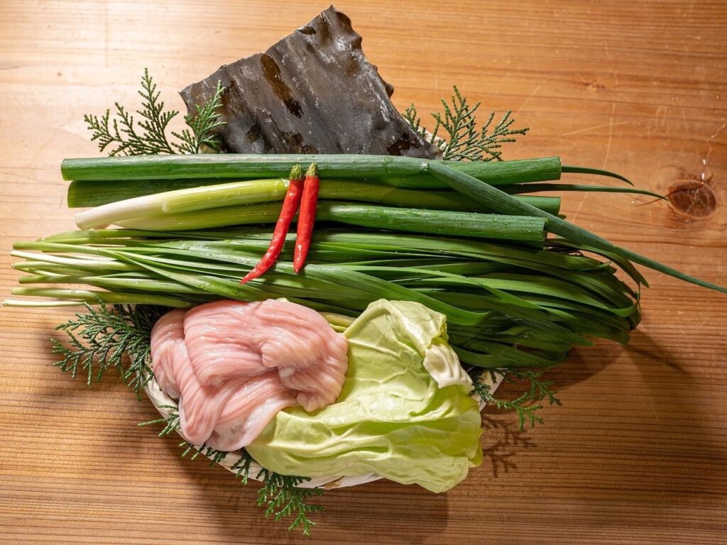 新鮮な和牛の小腸をげんきのお出汁&あご(飛魚)で頂きます。キャベツ、にら、にんにく、ごぼう、九条ねぎが入りお野菜と一緒に煮込んでお召し上がりくださいませ。お好みで白菜やお豆腐を入れても良いですね。