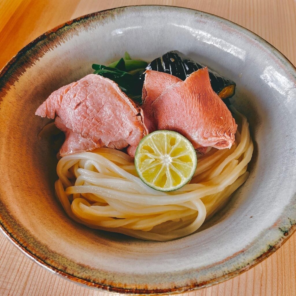 8月8日うどん屋げんき13周年記念コラボ静岡の肉ではNo.1の藤枝〜肉屋堀もと特別に厳選和牛タンをローストし、和牛赤身ローストビーフ、角切りにして肉ちらしと。 肉うどん 極み \2,000(税抜)店内飲食とテイクアウト可能。 テイクアウトはお肉も別皿にて... -